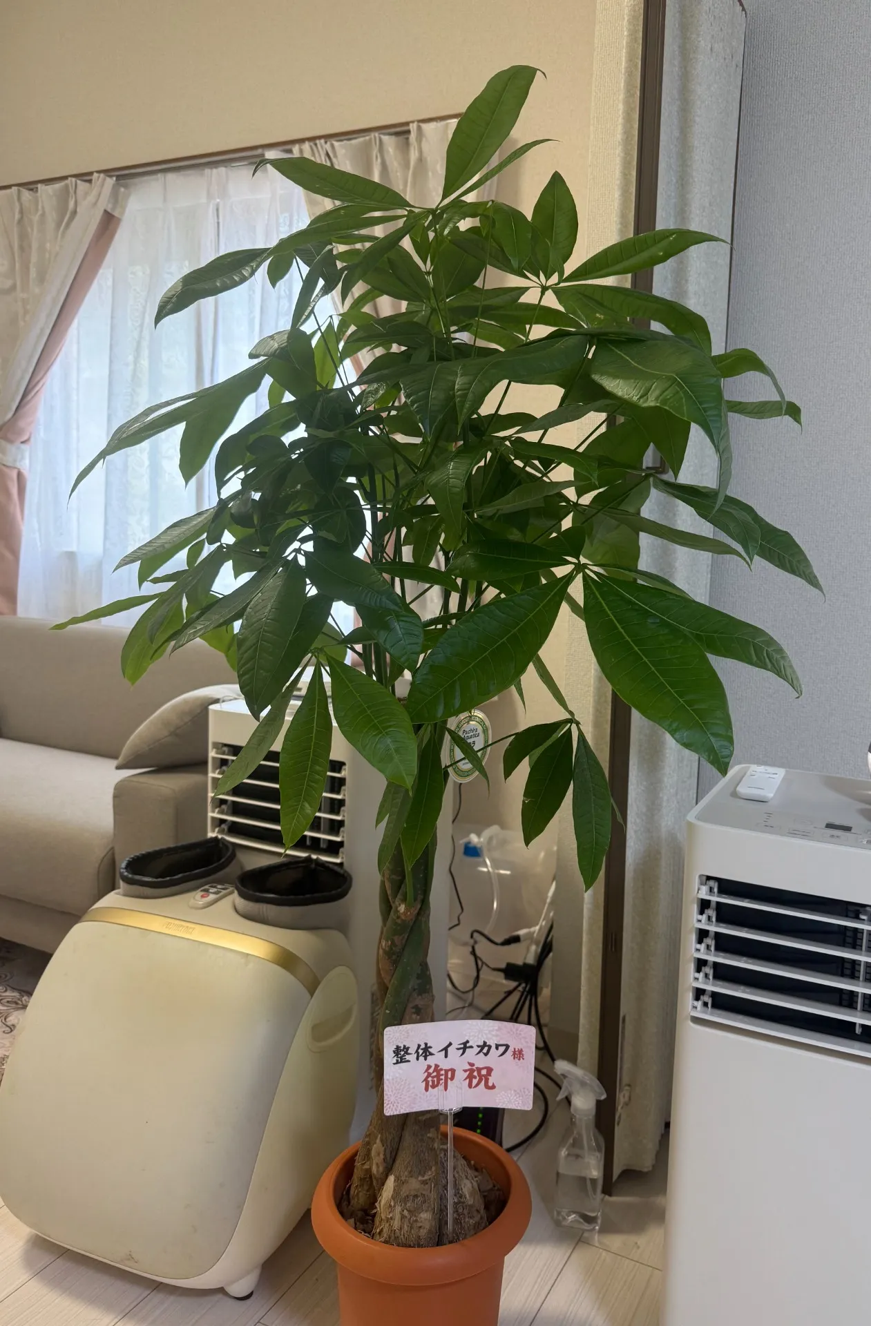 【 パキラちゃん 】が整体イチカワに来てから 新芽がどんどん成長